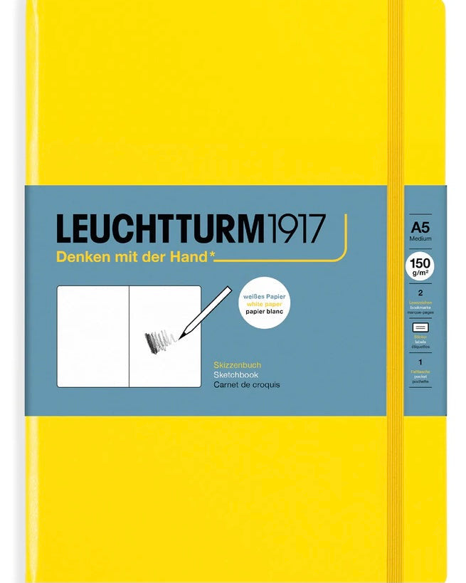 Sketching mental images, portraying people, drawing landscapes, painting, scribbling, shading, colouring and capturing what we see on paper, whenever something inspires us. All of this is now possible on our upgraded paper quality. 112 pages, 150 g/m² white paper; ideal for use with pencil, charcoal, chalk and ink. Just add your creative input. As with many Leuchtturm1917 notebooks, this sketchbook comes with 2 ribbon page markers, a gusseted pocked on the inside back cover for loose paper storage, and a set of self adhesive labels for indexing the cover and spine.