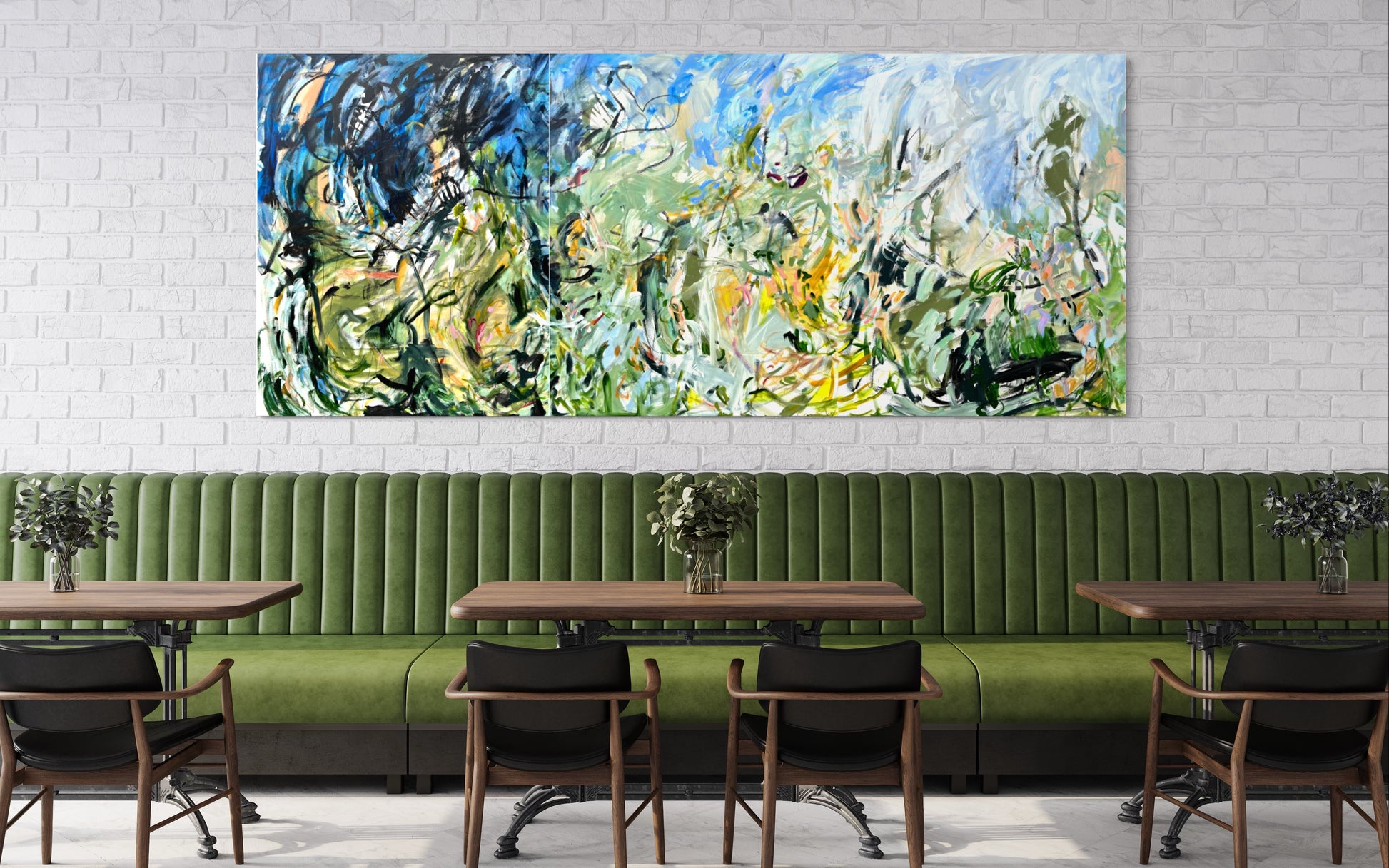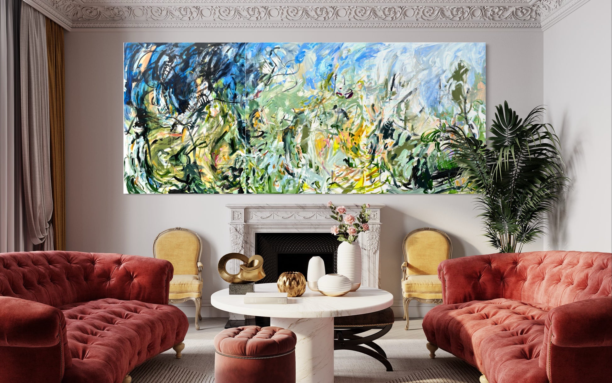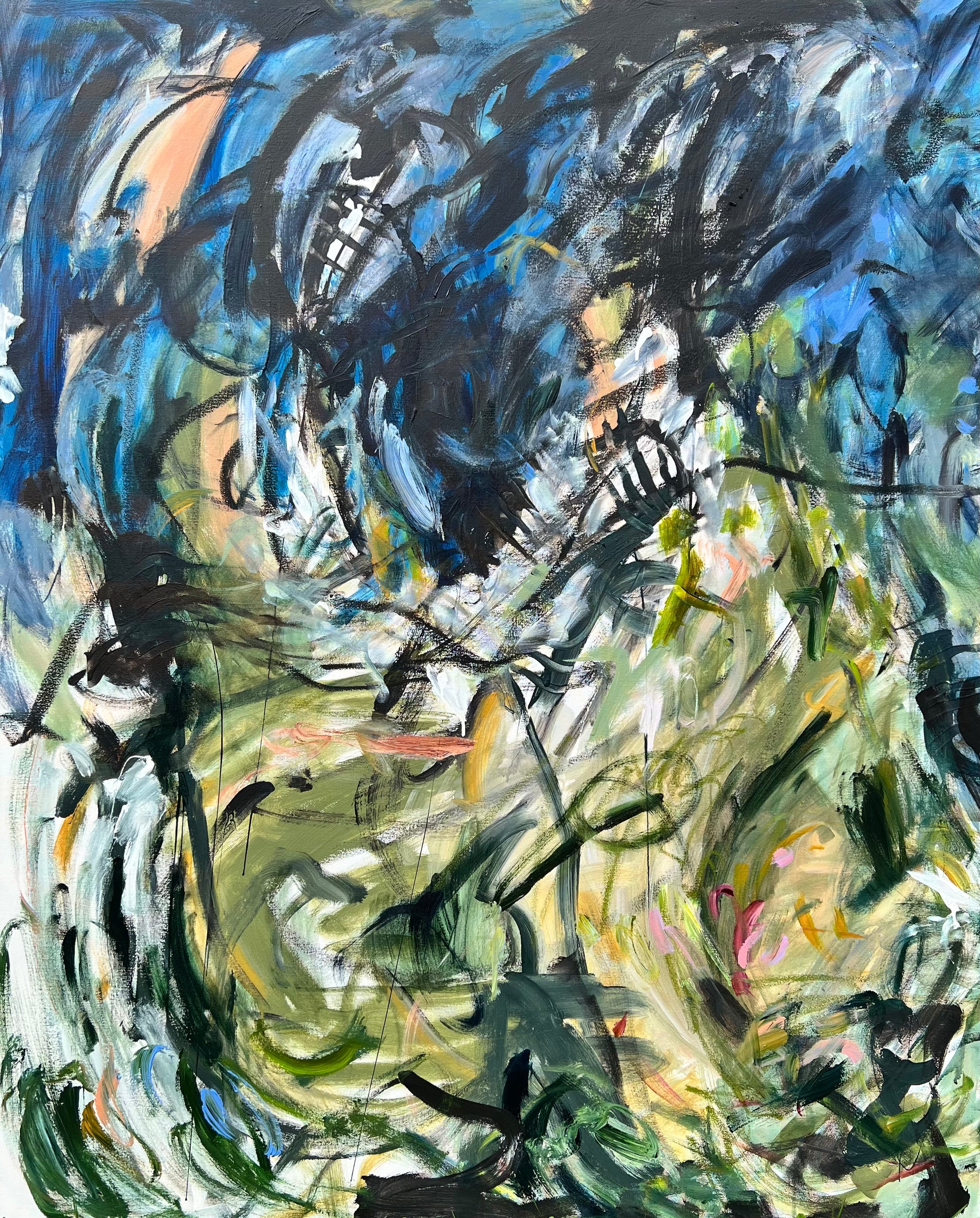 This triptych consists of three canvases that measure 48x60 inches each, totaling at 144” long (12 feet). I painted this piece in the days after a tornado struck our home in 2021. It was painted in collaboration with NYC based principal dancer, Claire Kendrick and Icelandic composer Olaffur Arnalds in an incubator series for Magic City Dance Company. A documentary filmmaker followed the progress of this piece for two years, a story of tragedy, grief, rebirth and the endless cycles of life to death to life.