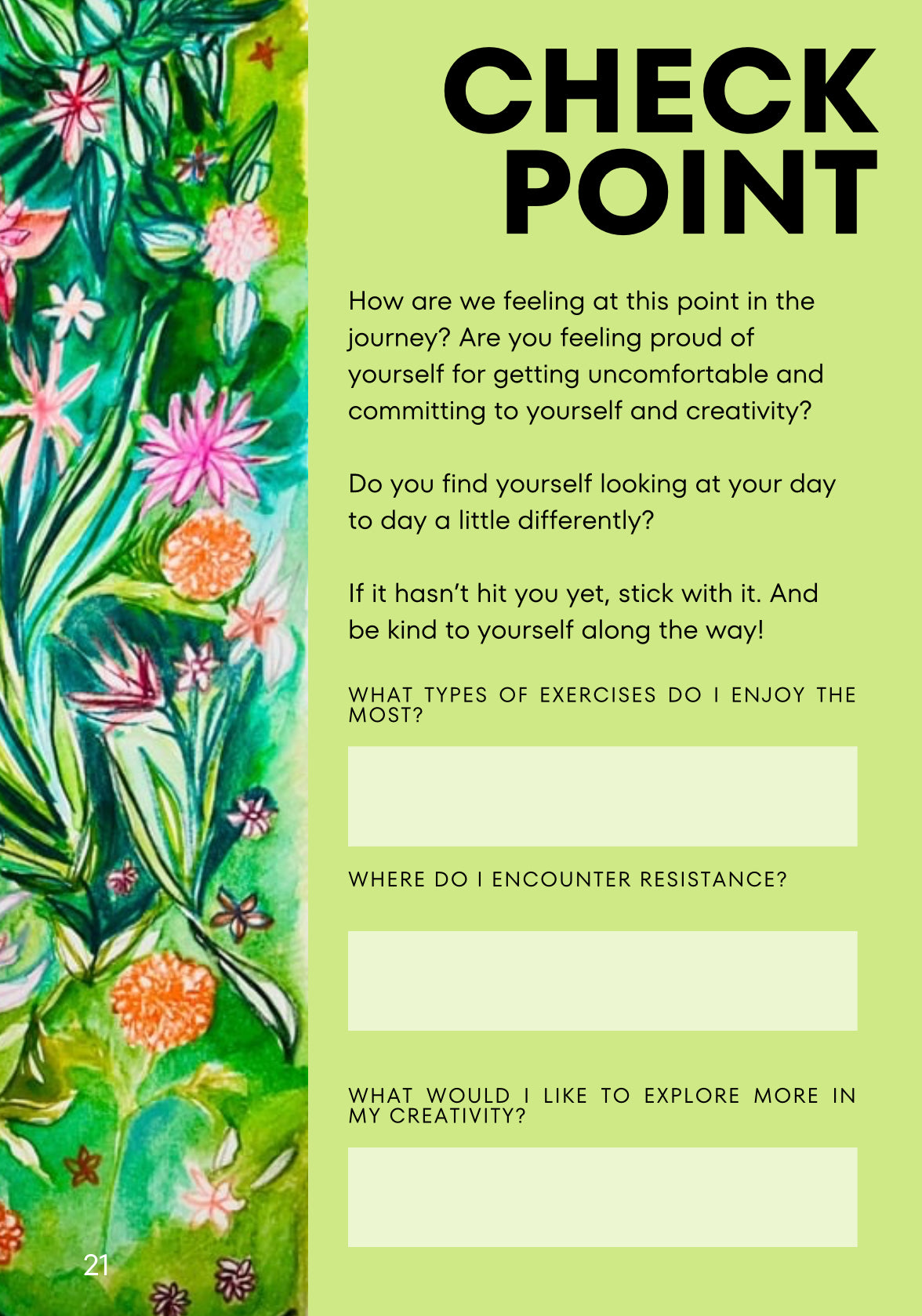 In this 29 page workbook, I will guide you through exercises and reflection points, offer support and resources and invite you into the FUN and CREATIVITY that happens when you get curious and bold with yourself!