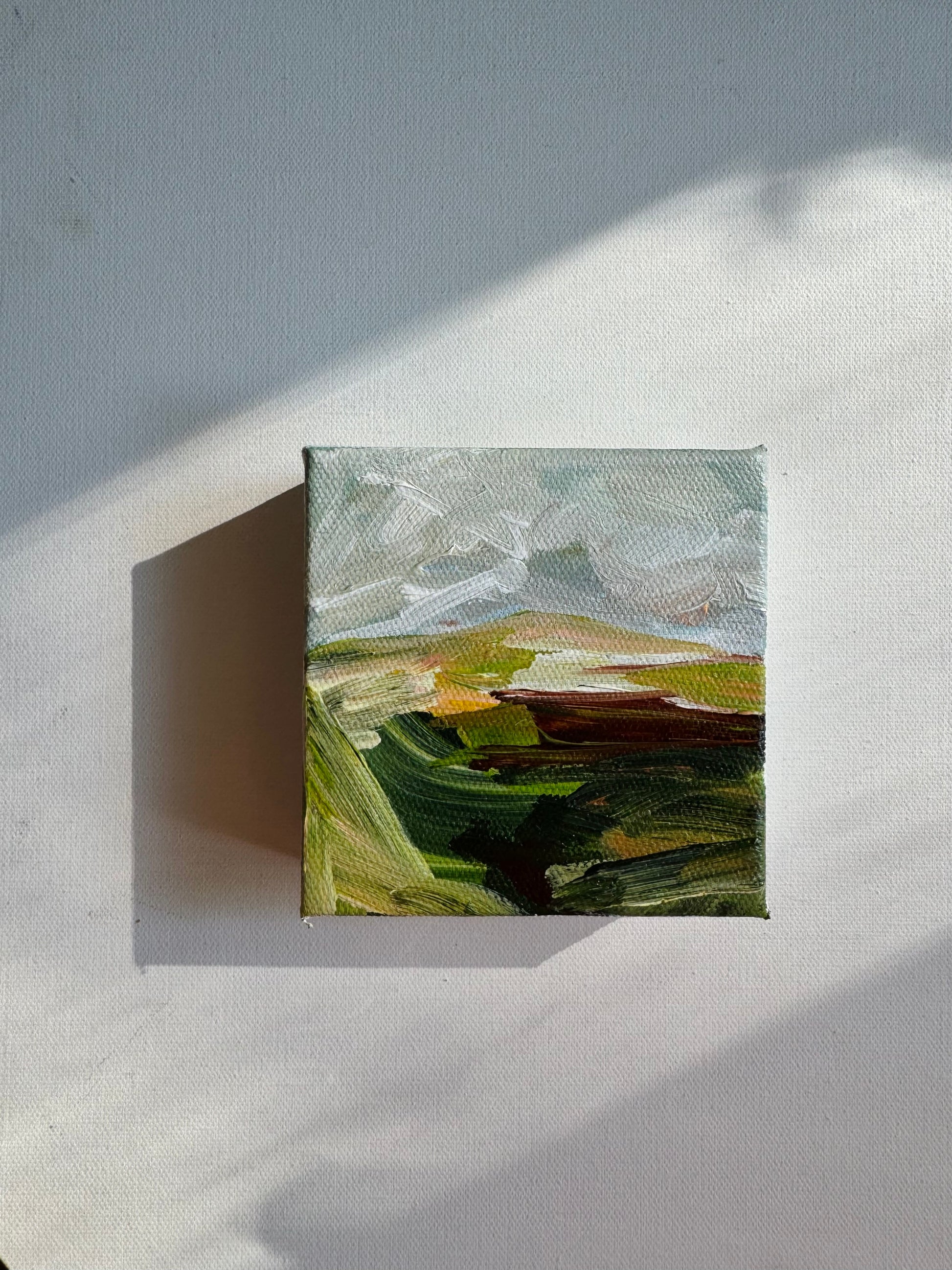 I spent part of July in Italy, wildly inspired by the rolling expanse of Tuscany. These small canvases depict the lush landscapes, vibrant earthy color palettes and the sense of an Italian summer as seen through the window of a moving train or vehicle.