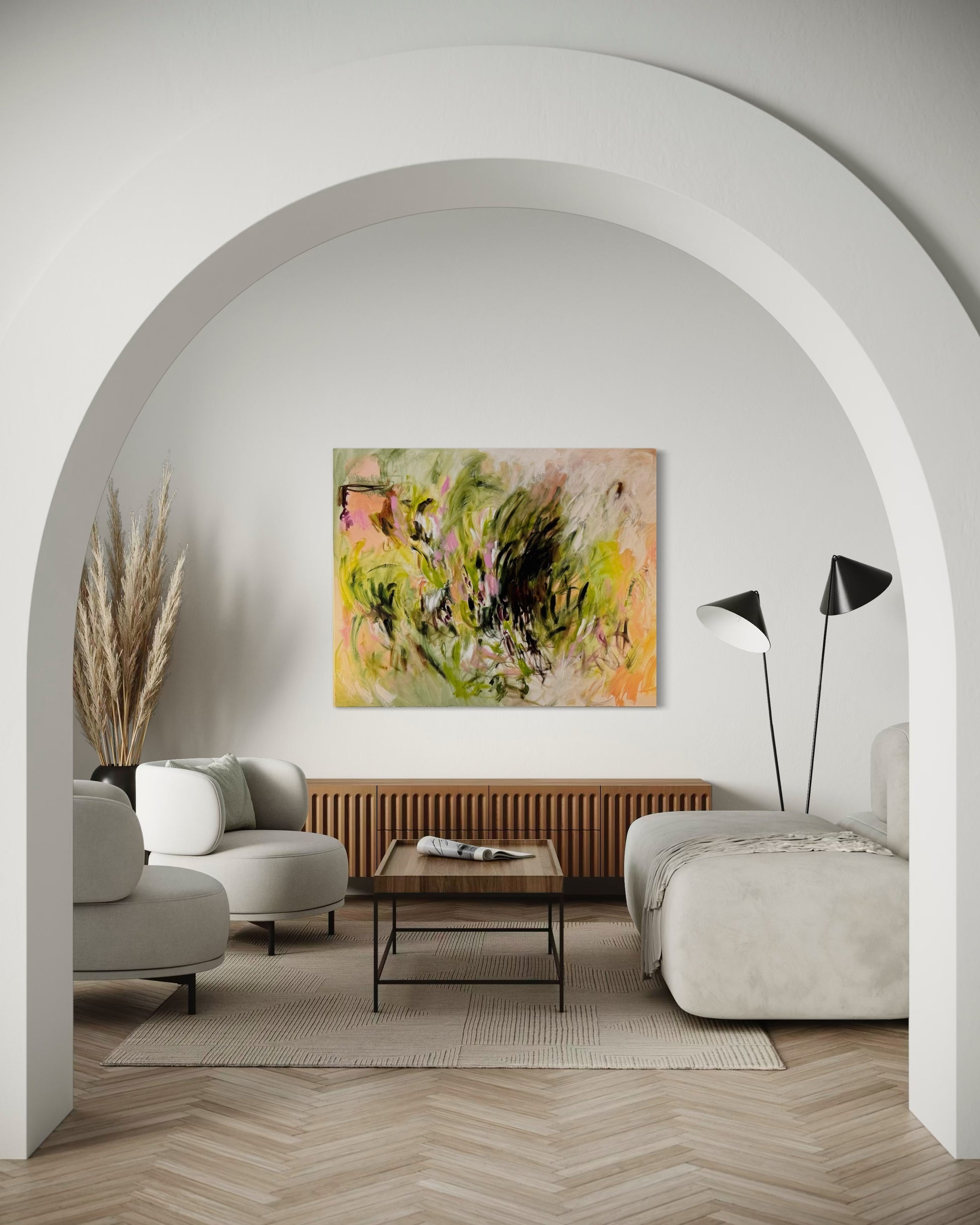 Note: This oversized painting requires special shipping accommodations that occur at an additional rate and require a shipping estimate. Please email morgan@ruggedandfancy.com for a quote. If you purchase before communicating with Morgan, she will email you within two business days of purchase to provide a shipping estimate and invoice.
